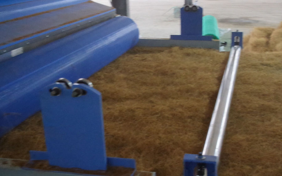 本生產線是利用椰棕纖維和膠水通過高溫熱風穿透粘合定型,通過壓板機多層壓實而成,椰棕墊是床上用品、服裝家具、沙發(fā)高級的芯墊材料。