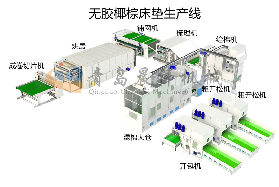 一、椰棕床墊生產線工藝流程:
